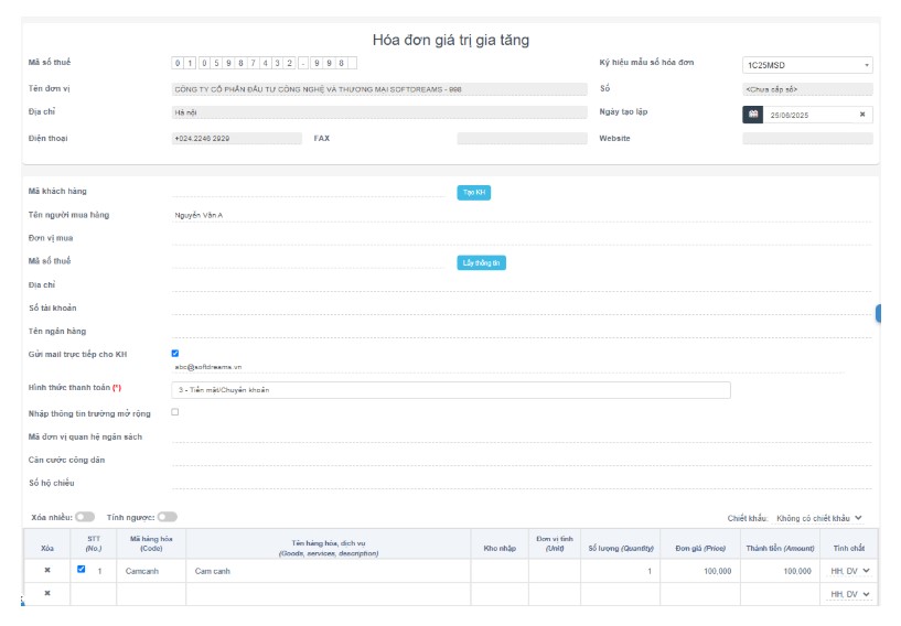 Bước 2: Điền đầy đủ và chính xác các thông tin cần thiết trên hóa đơn