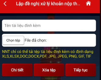 Bước 8: Đặt tên tài liệu đính kèm và chọn đơn đề nghị hoàn thuế -> Chọn “Tiếp tục”