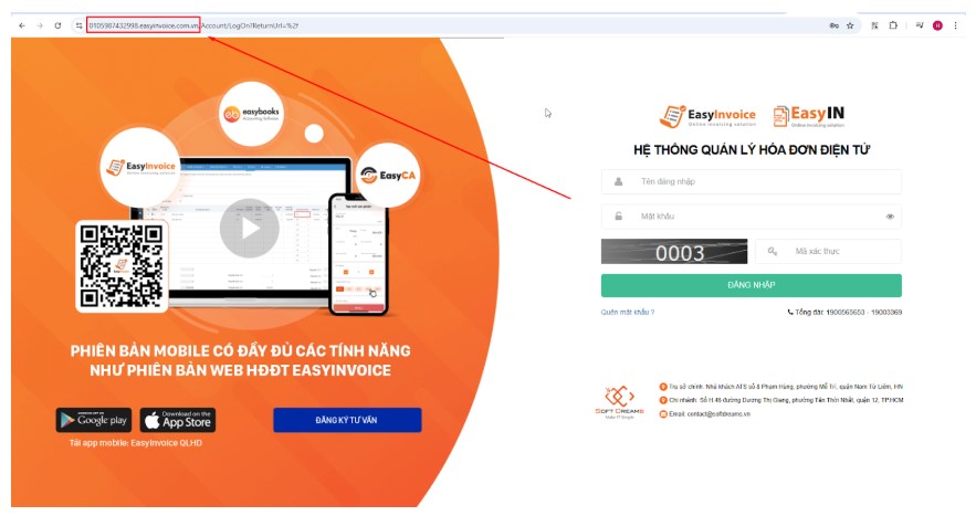 Quý khách thực hiện truy cập theo đường dẫn sau: https://MST.easyinvoice.com.vn